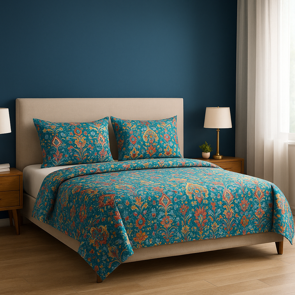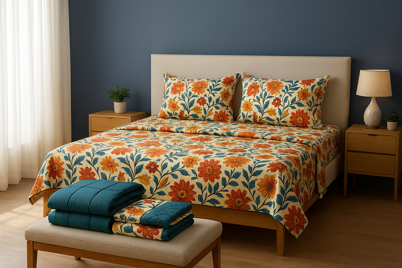 Misnaya Reversible Quilted Double Bed AC Comforter – Premium 200 GSM Relainace Fibre | Fine Supersoft Cotton Sateen | 90×100 Inches | All-Weather Comforter