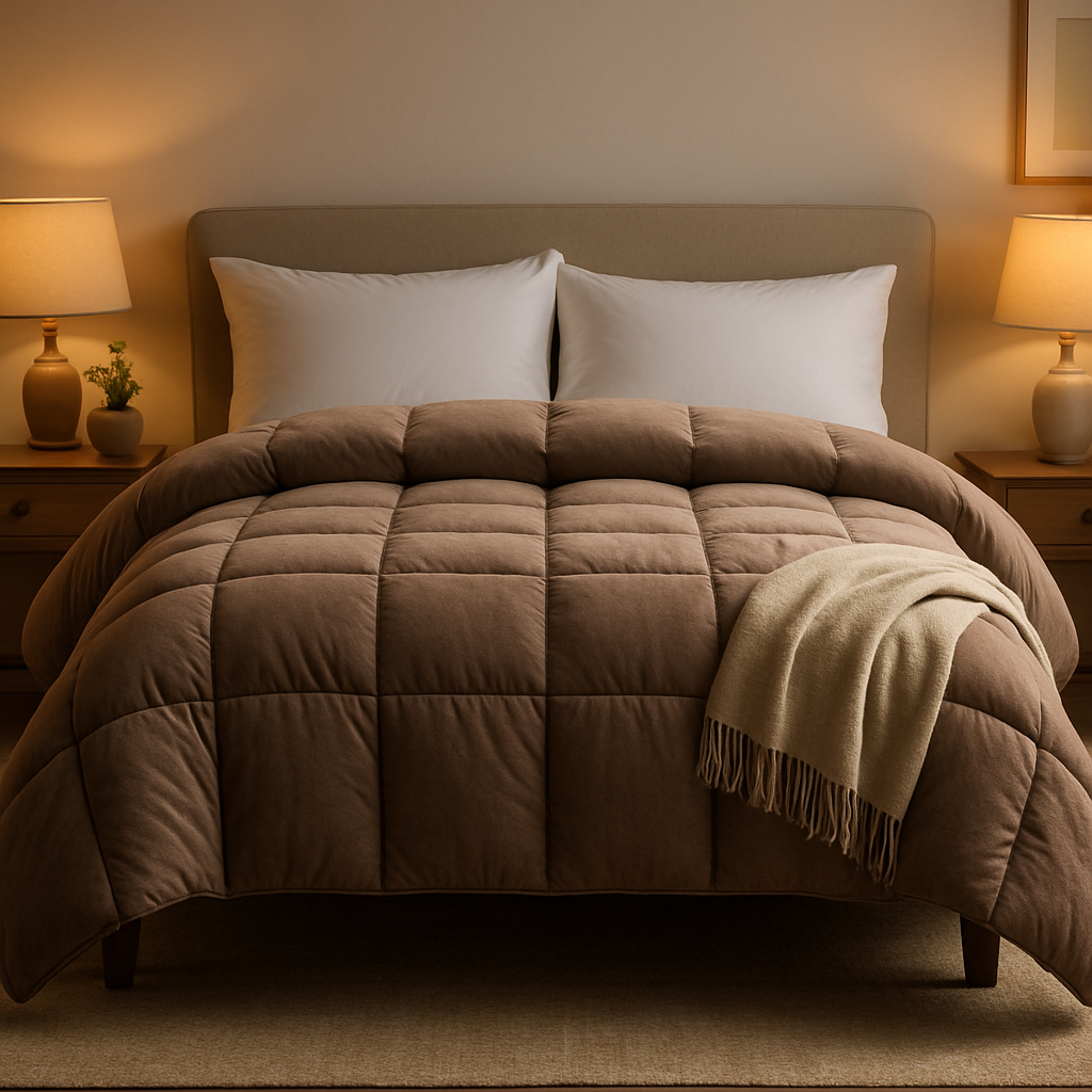This comforter feels so luxurious! The material is incredibly soft and warm, perfect for chilly nights. The color looks classy in my bedroom too. Totally worth it!