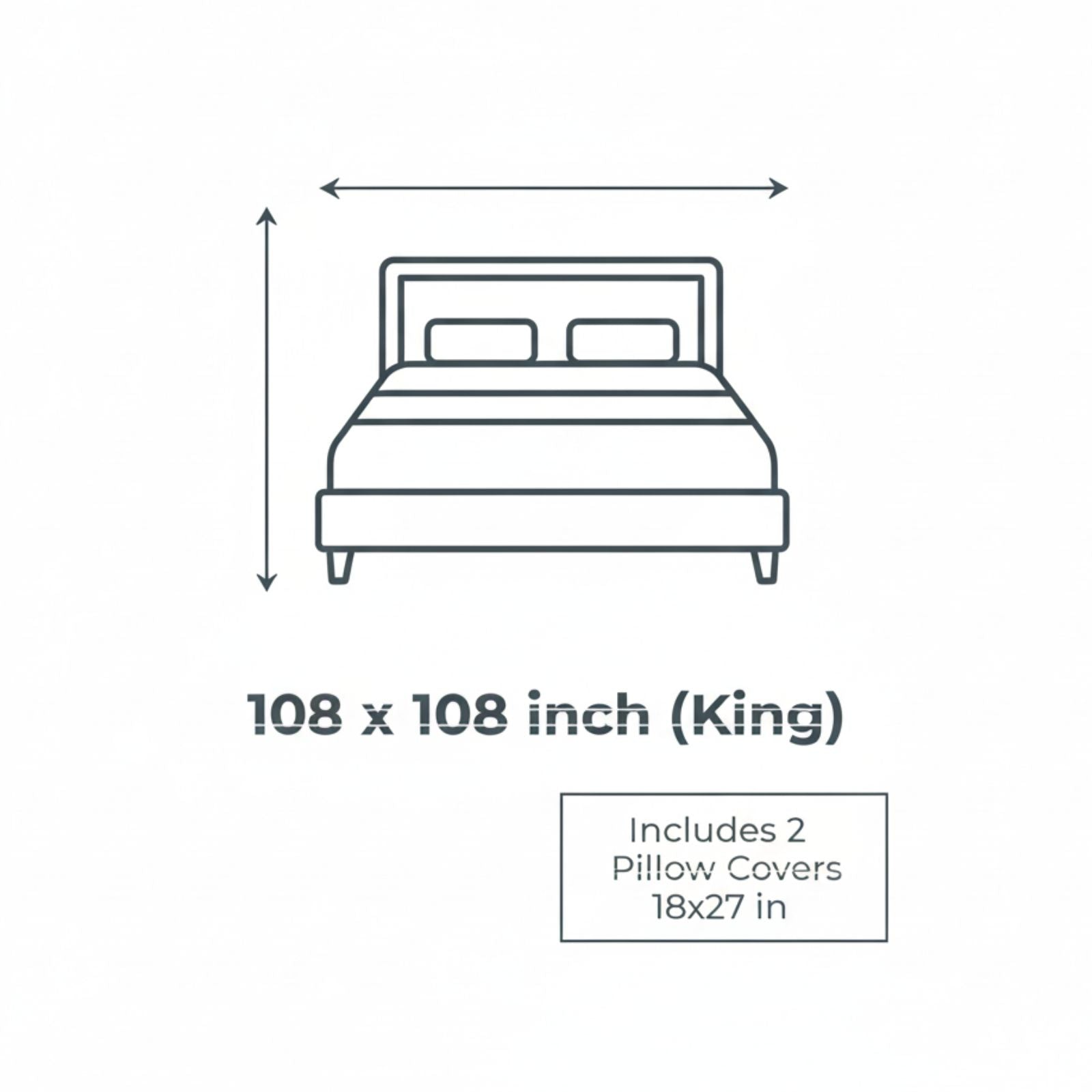 - Perfect King Size — 108 × 108 inches (includes 2 pillow covers)