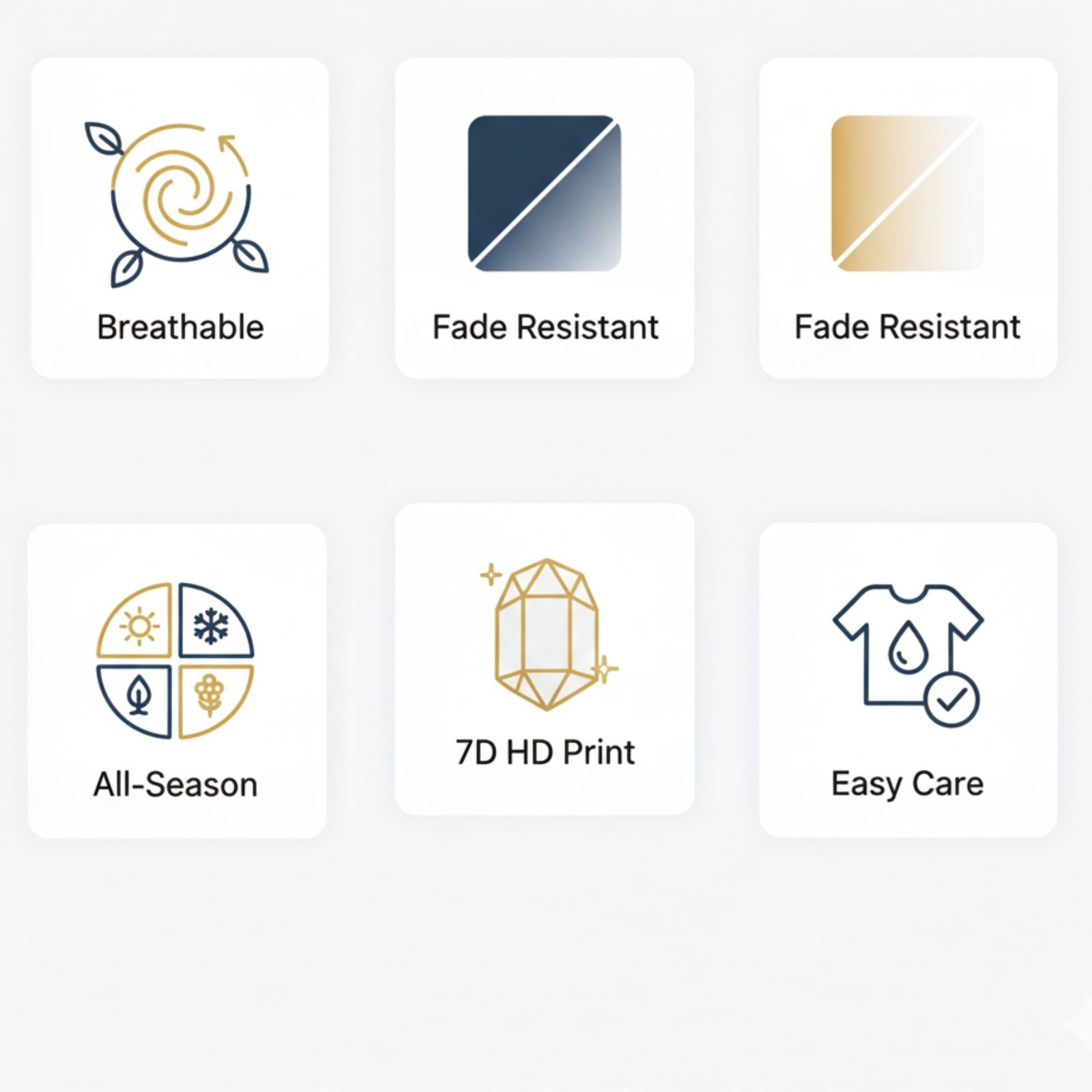 High-definition, fade-resistant 7D printing retains brightness and detail after repeated washing.