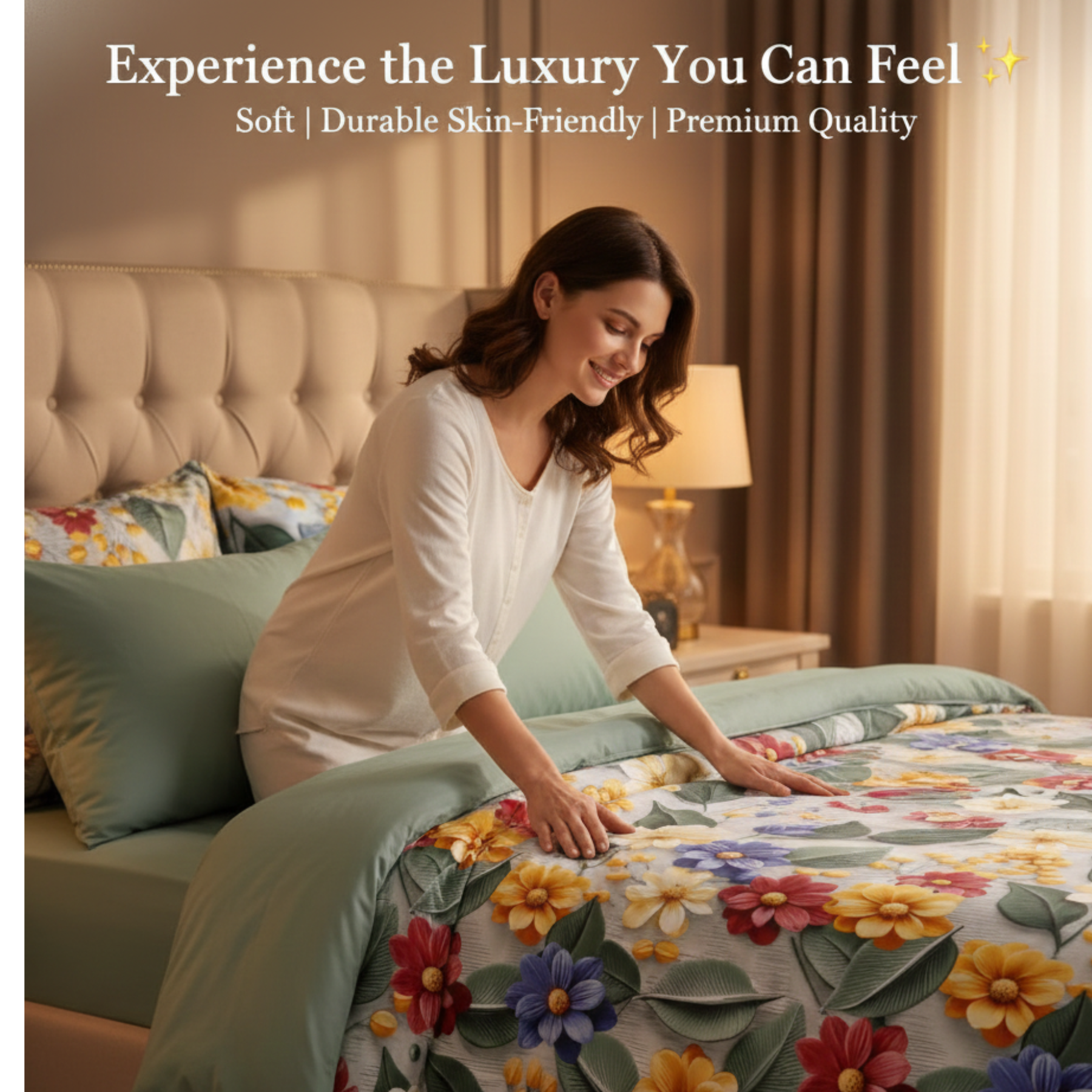 | Product Name | Spring Garden Blossom — Premium Glace Cotton Bedsheet |