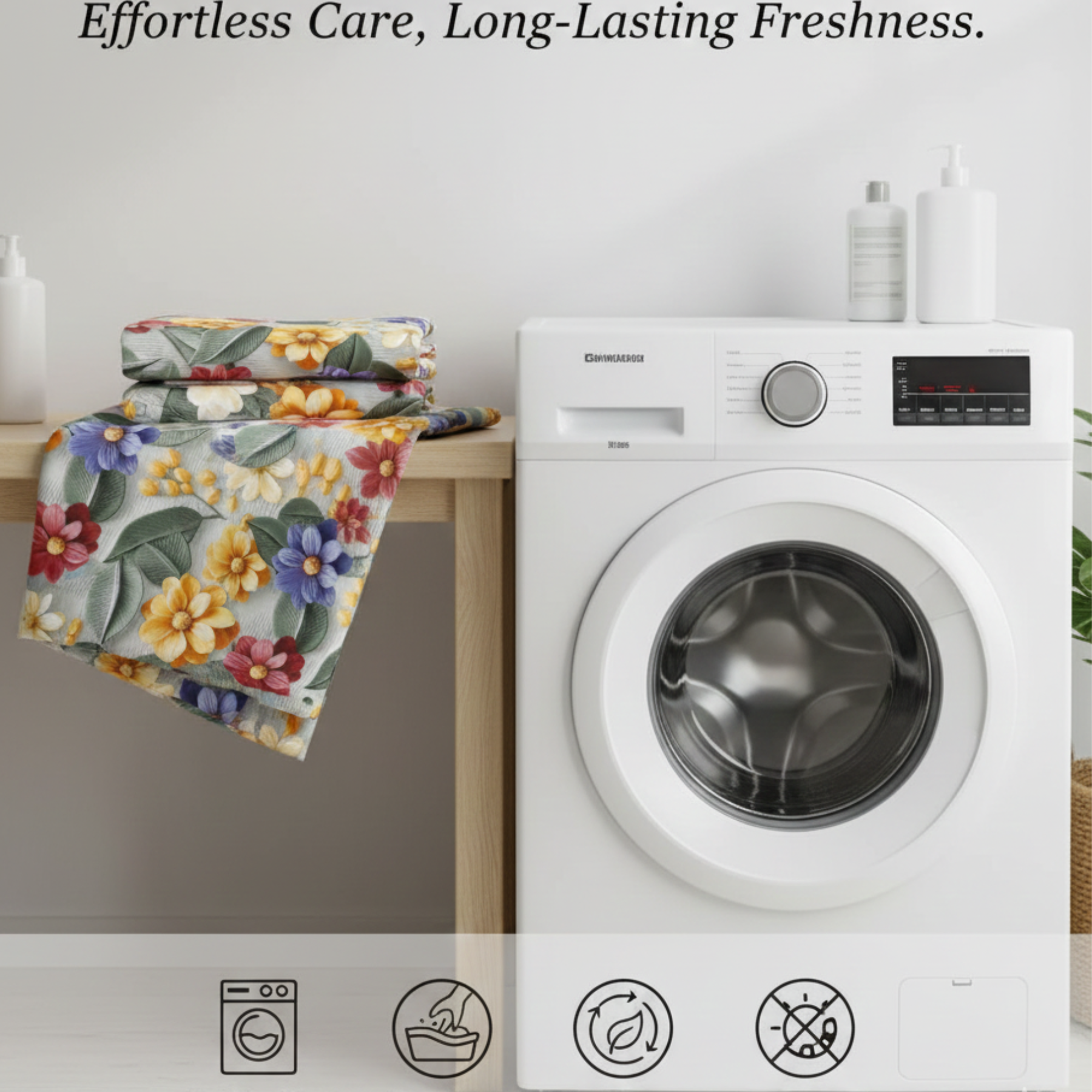 Transform your bedroom into a vibrant spring paradise with the Spring Garden Blossom bedsheet. Rich multicolor florals on a soft, textured background bring freshness, elegance and an instant hotel-style finish.