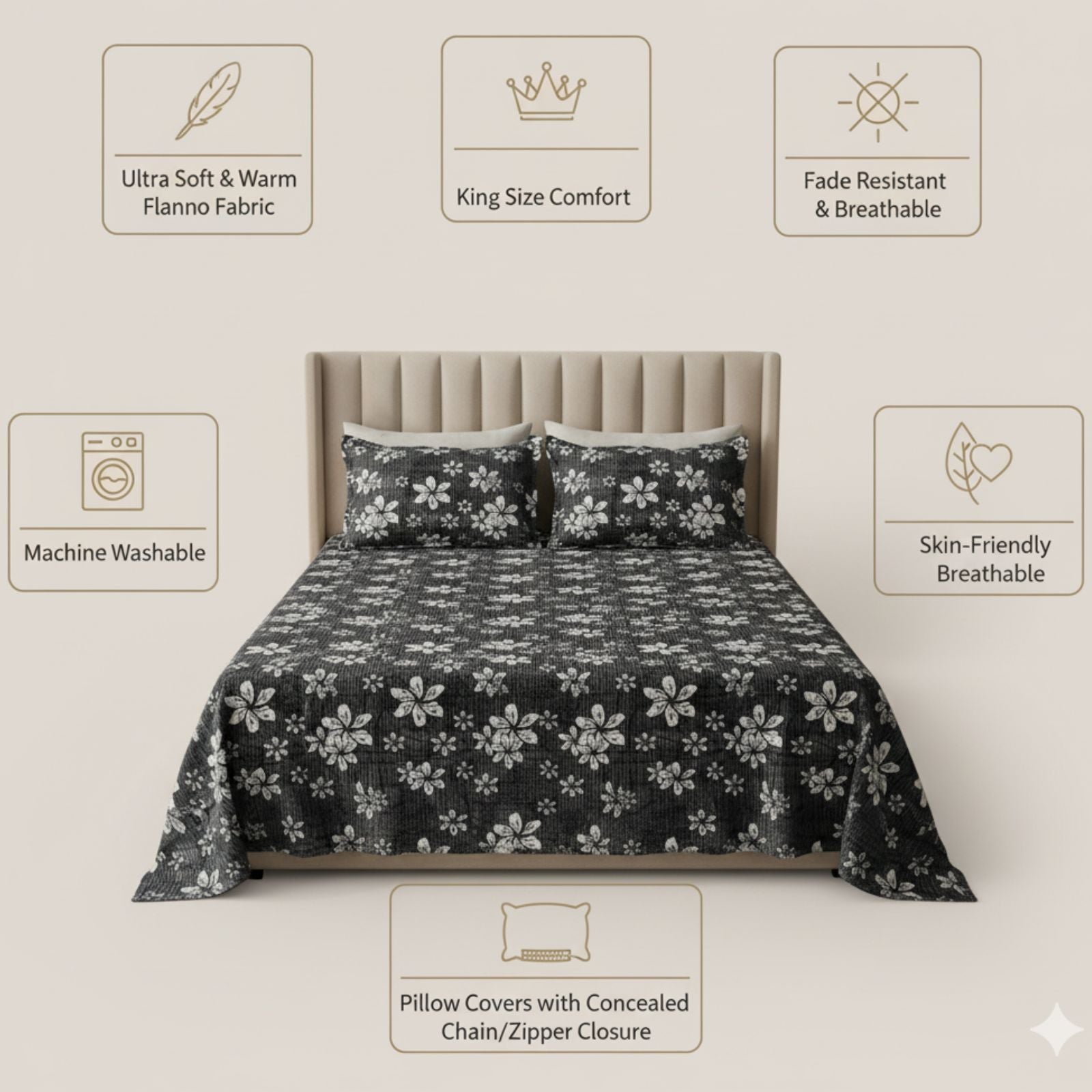 Cozy, elegant and ready for every winter night — soft to the touch and gentle on the skin. Perfect for home use, gifting, or guest rooms.